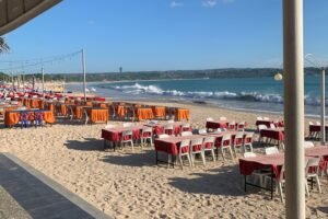 Akhiri hari Anda dengan makan malam santai di Jimbaran Bay yang terkenal dengan deretan restoran seafood di tepi pantai dan pemandangan sunset yang indah. Nikmati hidangan seafood bakar lezat yang disajikan langsung di atas pasir, ditemani suara ombak yang menenangkan. Dengan angin laut yang sejuk, suasana meja makan yang hangat, serta nuansa romantis khas pesisir, pengalaman makan di Jimbaran Bay menjadi penutup hari yang sempurna dan tak terlupakan.