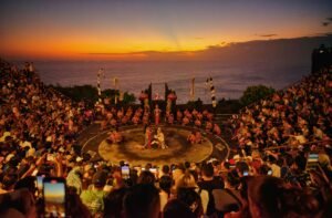Nikmati pengalaman menonton Kecak Dance, salah satu pertunjukan budaya paling unik di Bali. Berbeda dari tarian tradisional lainnya, Kecak dibawakan oleh puluhan pria yang duduk melingkar sambil melantunkan suara khas “cak-cak-cak”, menciptakan irama yang kuat dan magis. Tarian ini mengangkat kisah epik Ramayana, menggambarkan pertarungan antara Pangeran Rama dan Rahwana. Dengan alur cerita yang dramatis, gerakan yang ekspresif, serta suasana yang magis (terutama saat dipentaskan menjelang matahari terbenam) pertunjukan ini menjadi pengalaman budaya yang tak terlupakan selama di Bali.